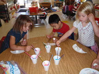 One day, we made edible paint by adding food coloring to a little bit of milk. We used our edible paint to turn marshmallows into works of art….and of course we ate them later! 🙂