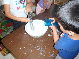Of course, the best part was getting to try them after! We used a cheese grater to grate soap and then added some water and used an egg beater to whip the soap into bubbles! What kinds of gadgets could your Iguana explore at home?