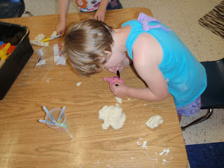 What are sacky wacks? They’re a lot like stress balls made made out of play dough filled balloons. First everyone helped make a new batch of playdough…