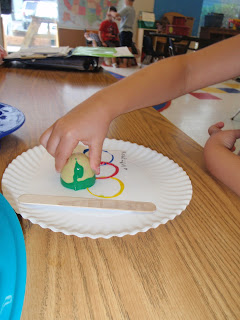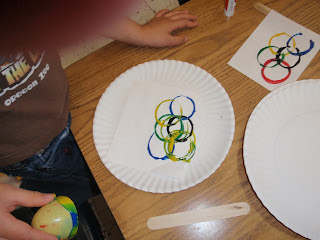 Using cardboard, foil, and ribbon, we made our own Olympic medals…