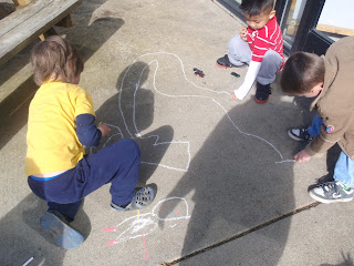 What an exciting week in the Robins class! It finally started to feel like spring! On Monday, we took advantage of the beautiful weather by opening up the patio. The children basked in the sun and drew vibrant chalk pictures on the sidewalk…