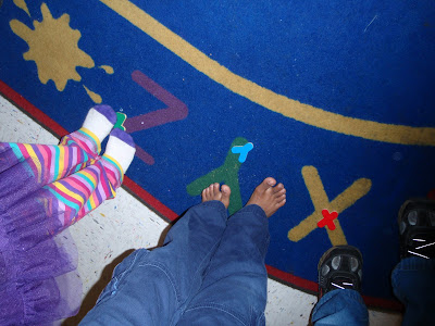 At circle time each child was given a letter puzzle piece and then asked to find the corresponding letter on the ABC carpet. We then took turns arranging our puzzle pieces in the board…