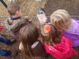 Then we were off to the petting zoo to see goats, sheep, rabbits, chickens, turkeys, pigs, a donkey & a cow.