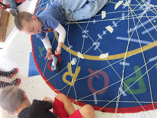 After morning circle was over, the children continued to make the web bigger and better.